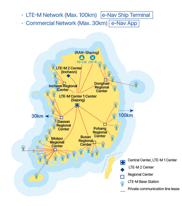 It is a network to provide intelligent marine traffic information services (e-Nav) to ships sailing up to 100km off the coast