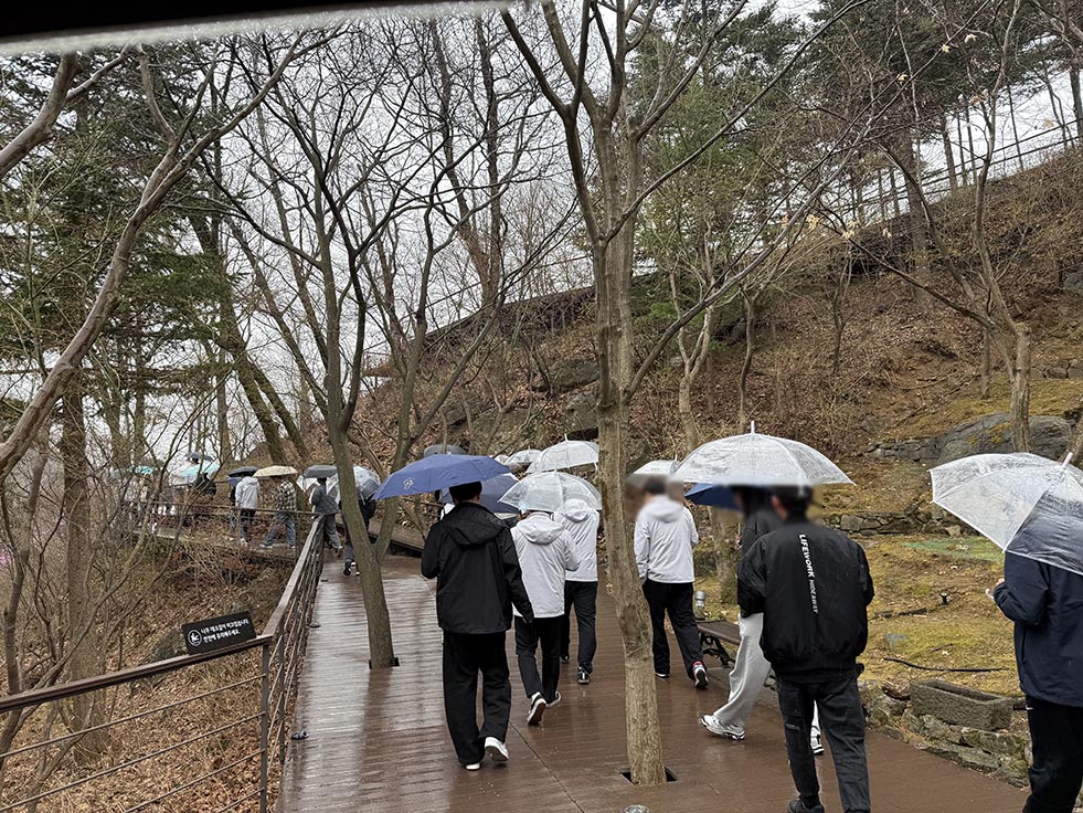 모두들 사전에 준비한 비옷과 우산을 챙겨